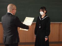 野球部、サッカー部、男子卓球部、女子バレー部、女子ソフトテニス部、吹奏楽部などの部活動の表彰と標語コンクール、ポスターコンクール、席書コンクール、防火ポスターなどの個人の表彰がありました。
