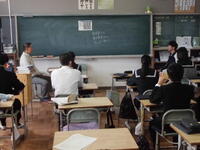 また、本日の1・2年生の授業参観や3年生の授業の様子を学校運営協議会の方々に参観していただきました。3年生の面接練習の際には、学校運営協議会委員の方が急遽面接官となり、面接指導がありました。そのような状況でも落ち着いて受け答えができた生徒に仲間から大きな拍手がありました。