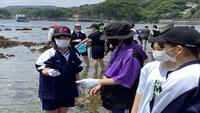 磯観察前に早く着いた生徒が、「だるまさんが転んだ」で楽しんでいます。