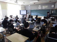 3年生保健体育の授業です。エイズの予防について学習しました。性感染症の広がりを実感できるように、水の交換実験を行いました。私立高校入学試験翌日ですが、3年生は意欲的に学習しています。