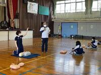2年生は日本赤十字社のみなさんをゲストティーチャーにしてAEDを使った心肺蘇生法について学びました。