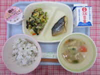 2月13日(月)今日の献立 投稿日時 : 2023/02/13 栄養士 ☆☆献立☆☆・菜飯・牛乳・塩サバ・ハムと小松菜の炒め物・みそ汁・レアチーズ ☆☆主な産地☆☆・キャベツ(三島)・小松菜(三島)・人参(三島)・しめじ(三島)・大根(三島)・白菜(三島)