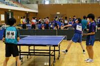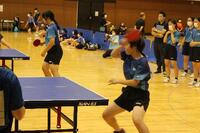 男子卓球部は市民体育館で団体戦に臨み、チームの代表6人(シングルス4、ダブルス1)が南中学校と戦いました。