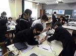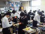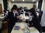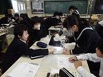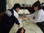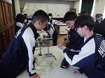 写真は、双眼実体顕微鏡を使う1年生の皆さん