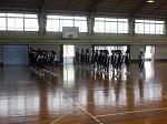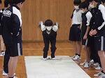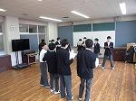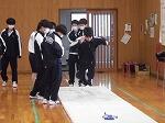 柔剣道場にて、新体力テストの立ち幅跳びの記録に挑戦しました。立ち幅跳びは、全身の跳躍力を使ってより遠くへ跳ぶ種目です。皆さんは、最長記録が出せるように両手や上半身をうまく使い、競技をしていました。