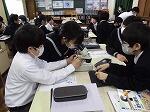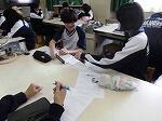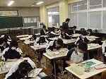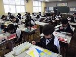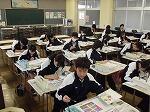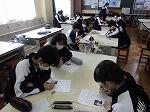 自分の描いた作品に、色づけの作業が進んでいます。作業の時には誰も一言も話さずに、集中して作品作りが行われています。さすが、中郷西中学校の生徒の皆さんですね。