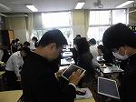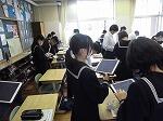 二人組になり、IPadを使って英語の音読に挑戦しました。相手が英語を話しているときには聞き手は、日本文のみ見ます。その後交代して同じことを繰り返します。今後これを繰り返すことで速読ができるようになったり、意味を素早くくみ取れるようになりますね。