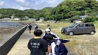磯観察前に早く着いた生徒が、「だるまさんが転んだ」で楽しんでいます。
