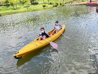 班別研修のチェックポイントであるカヌー乗り場では、苦労しながらも楽しむ生徒の姿がたくさん見られました。