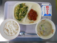 今日の献立は、6年2組が家庭科の授業で考えた献立です。