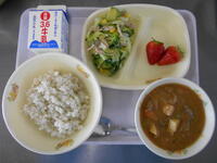 今週は、給食記念週間です。今日は、記念して赤飯を炊きました。