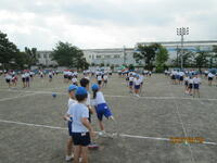 今朝は朝運動でドッジボールラリーを行いました。暑さ対策でなかなかできなかったので、久しぶりの朝運動です。