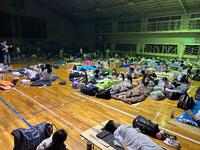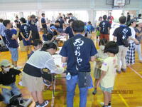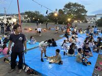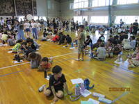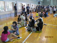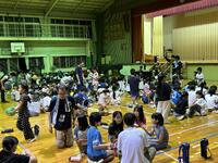 一日目が終わります。みんな体育館で就寝です。夜のトイレやもしものために、おやじの会の方々が交代で見守ってくださっています。