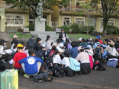 多くの見送りの中、6年生が修学旅行に出発しました。
