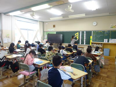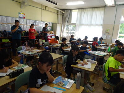 黒板を見ながら、みんな自分の考えをノートに書きこんでいました。