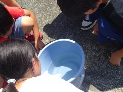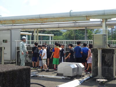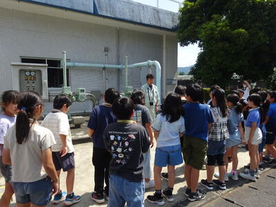 子供たちは、臭いがあり濁っていた汚水が、魚が住める状態になるまでを見学して驚いていました。