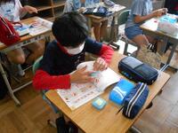 2年1組も国語で新出漢字の学習です。みんな集中して、ていねいにドリルに書いています。