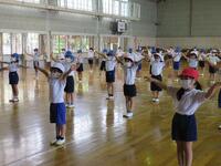 4時間目、4年生が体育の時間に運動会の団体演技「4・3 soul ~三原色~」の練習をしました。子供たちで振り付けを考えた創作ダンスです。本番では3年生といっしょに踊ります。みんな、リズムに合わせてノリノリで体を動かしていました。