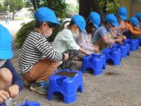 「わたしはねぇ、ナスを育てるの。」と嬉しそうに話してくれる子や、「先生、ぼくはピーマンを育てるんだよ!ピーマンの肉詰め、うまそうだなぁ!」と、種まきの前から食べることをイメージしているかわいい子も!