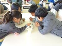 条件が整ったグループは、ビーカーで水の量を揃え、流しながら観察→流した後も観察していました。