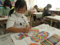 図工の「おはなしから うまれたよ」の学習で、「ぞうのエルマー」の話を聞いて感じたことや想像したことを描きました。パッチワーク模様のエルマーに、楽しい仲間。鮮やかな色づかいで、見ていると楽しい気持ちになる作品になりました。