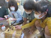 どんぐりやまつぼっくりを使った「秋のおもちゃ作り」の学習をしています。今まで、「どんなおもちゃを作りたいかな?」、「そのおもちゃを作るために必要な材料や道具は何かな?」、「どんな順番で作ったらいいかな?」と、準備をしてきました。今日は待ちに待ったおもちゃ作りの日でした。はさみでチョキチョキ、テープやのり、ボンドでぺたぺた。普段は使わない段ボールやビニールテープなどの扱いにちょっと苦戦しながらも、すてきなおもちゃができました。