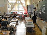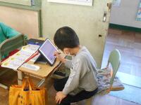 1年生がタブレットのメタモジを使って、自分の名前と「すきな きゅうしょく」を三つ、考えて書きました。手書きで書いた文字が活字に変換されたり、文字のポイント(大きさ)を自由に変えることができたりと、便利な機能を知って大喜び。給食のメニューについても、「ぼくはあげパンがいいなぁ。」、「カレーにしようかなぁ。」と、みんなニコニコしながら考えていました。