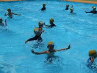2年生の体育「水遊び」の学習です。水中でだるまさんになって浮いたり、「大」の字になって浮いたりして楽しみました。最後は水中に沈んだゴルフボールを、もぐって拾いました。なんと10個以上拾った子も!!