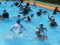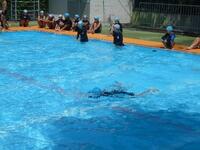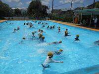 1年生はプールが深くなっても怖がる様子はなく、ウサギのように跳ねながらプールの中を進んだり、手で水をかきながら進んだりと、みんな気持ちよさそうに活動していました。