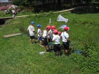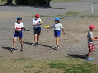 屋外ゲームクラブは、暑い日にぴったりの水遊びです。各自水鉄砲を用意して、気持ちよさそうに楽しんでいました。