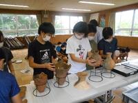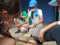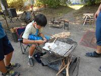 1組のクラフトの様子です。手を切らないように、竹を削りすぎないように気をつけています。