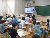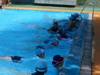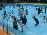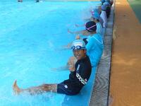 3時間目に1年生がプール開きを行いました。初めて小学校の大きなプールに入った1年生。大喜びしている子も、逆にドキドキしている子もいました。