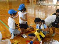7月1日(土)に「あつまれ!西の子の森」が開催されました。おやじの会をはじめ、三島警察署、三島消防署の皆さんのご協力のもと、災害時にどの様に自分の身を守るのかを、楽しいゲームと共に学んでいきました。