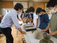 また、いろいろな時代の土器についてもくわしく教えていただきました。写真で子供が持っている土器はレプリカではなく本物の土器です。土器だけにちょっとドキドキしましたが、市の職員の方は「子供たちに触ってもらえた方がいいです。」と言ってくださって安心しました。