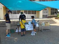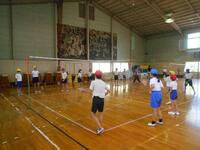 体育館ではバドミントンクラブとボールゲームクラブが活動していました。換気を十分にし、さらに大きな扇風機を使って熱中症対策を行っています。