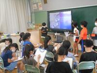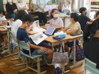 パソコン室ではパソコンクラブの子たちがソフトを使ってタイピングの練習をしていました。エアコンが効いていて涼しそうです。