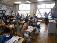 3時間目の5年生、国語の学習の様子です。説明文を読んで、筆者の考えと根拠となる事実を意識しながら読み、文章の要旨を考えています。