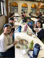 朝のつどいが終わり、朝食です。おいしそうに食べています。