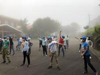 学校に向かって出発しました。到着後、閉校式を行います。