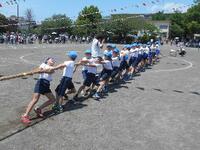 プログラム15番、5年生の「ツナとりGO5!」です。綱を引くだけでなく、後ろにあるツナをとったら勝負あり!です。力と力のぶつかり合い!見ている方も力が入ってしまいました。綱の準備と片付けは、おやじの会の皆様が手伝ってくださいました。本当にありがとうございます!