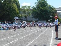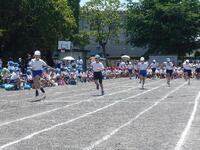 プログラム11番、4年生の「学級対抗リレー」です。この日のために、1組も2組も練習を重ねてきました。バトンパスがだんだん上手にできるようになってきています!