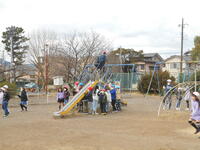 3日の朝、今年度最後の学年つどいを行いました。運動場では6年生、3年生、1年生が楽しく活動しています。