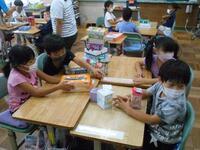 1年生の算数「かたち」の学習の様子です。先週仲間分けしたいろいろな形の箱を、どれだけ高く積んでいけるか挑戦しました。途中で倒れてしまうと「あ~っ!」と残念がる声が。また、高く詰めたグループでは大歓声があがっていました。