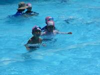 1年生はプールが深くなっても怖がる様子はなく、ウサギのように跳ねながらプールの中を進んだり、手で水をかきながら進んだりと、みんな気持ちよさそうに活動していました。