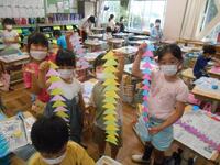 明日から7月です。図画工作の時間に折り紙でちょうちんや貝殻、輪飾りなどの七夕飾りを作りました。中には難しい網飾りに挑戦する子もいました。短冊には、お星様に見えるように大きな文字で丁寧に願いごとも書きました。みんなの願いが叶いますように。
