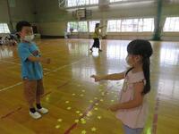 少し早いですが七夕の会をしました。じゃんけんをして勝つと天の川の星をもらうことができるゲームでは、どのチームもたくさんの星を集めることができました。七夕の歌を歌ったり、ゲームをしたりしてあっという間の1時間でした。