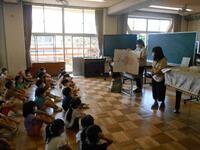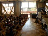 1日(金)の朝、学年つどいがありました。1年生は第2音楽室で先生の読み聞かせを聞いていました。いつもよりも大きな絵本で読み聞かせをしたので、後ろに座っている子にもよく見えました。