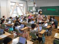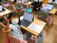 1年生が、いよいよタブレットを使い始めます。3時間目にタブレットの使い方を学習していました。電源の入れ方、起動の仕方を覚え、指紋認証での起動もできるようになりました。みんな自分のタブレットを前に、目を輝かせています。