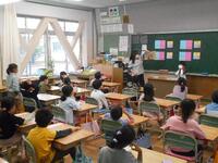 4時間目の生活の時間に、1年生がアサガオの種まきをしました。写真は1組の様子です。