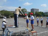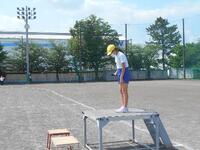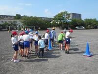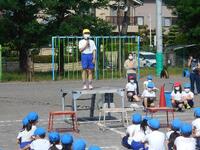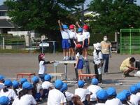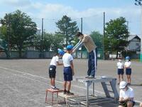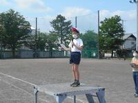 水分補給のための休憩を挟んだ後には、閉会式の練習をおこないました。右の写真は結果発表をしているところです。